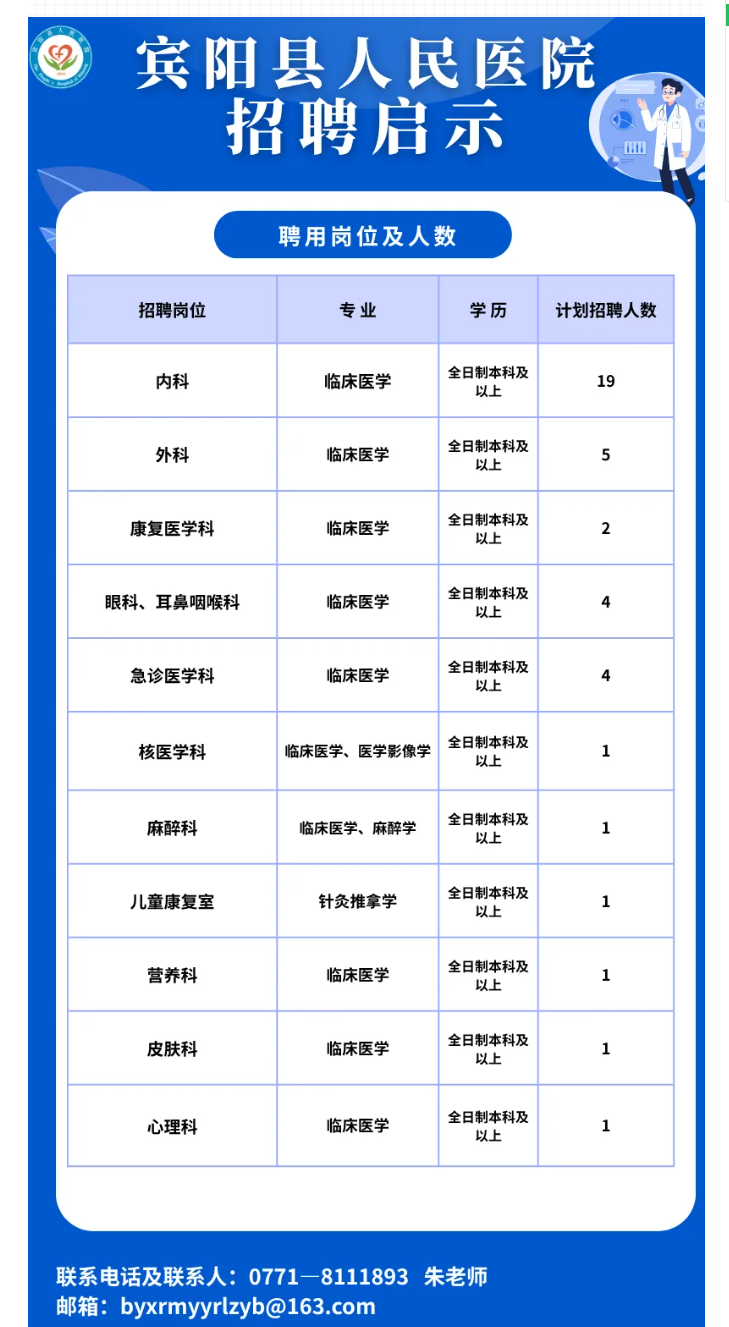 2025年賓陽縣人民醫院招聘若干人