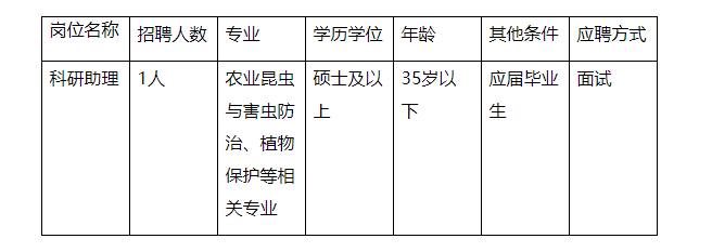 4. 熱愛農業科研工作,具有良好的綜合素質、溝通能力、團隊合作能力及高度的責任心;