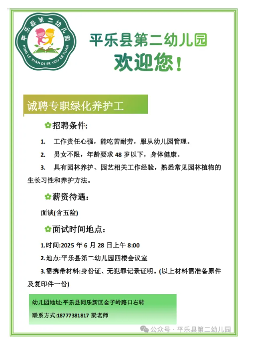 2025年平樂(lè)縣第二幼兒園招聘公告