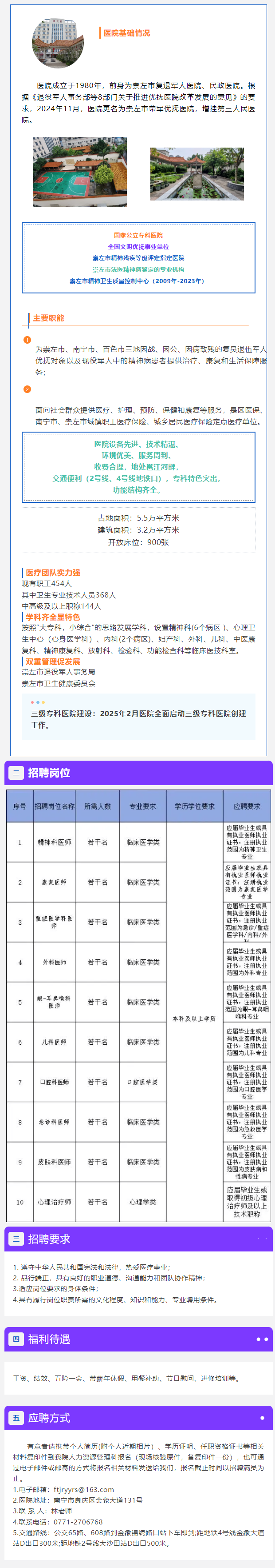 原文標題:招賢納士,“職”等你來! 崇左市榮軍優撫醫院招聘公告