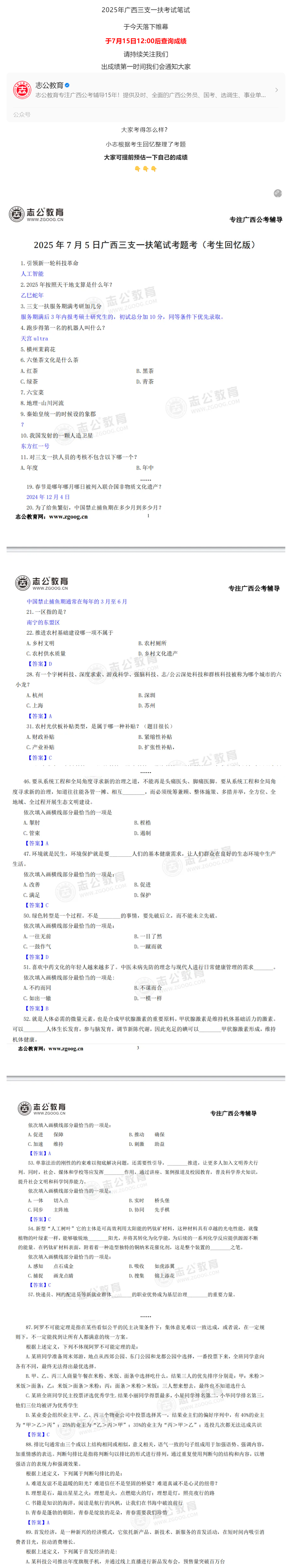 快對答案!2025廣西三支一扶筆試考題及解析出了!