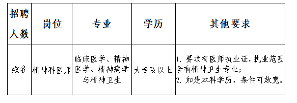 根據業務發展需要,持續加強我市心理健康和精神衛生服務能力建設,更好地滿足我市廣大人民群眾看病就醫需求,我院特面向社會公開招聘數名編制外聘用工作人員,現將有關事項公告如下: