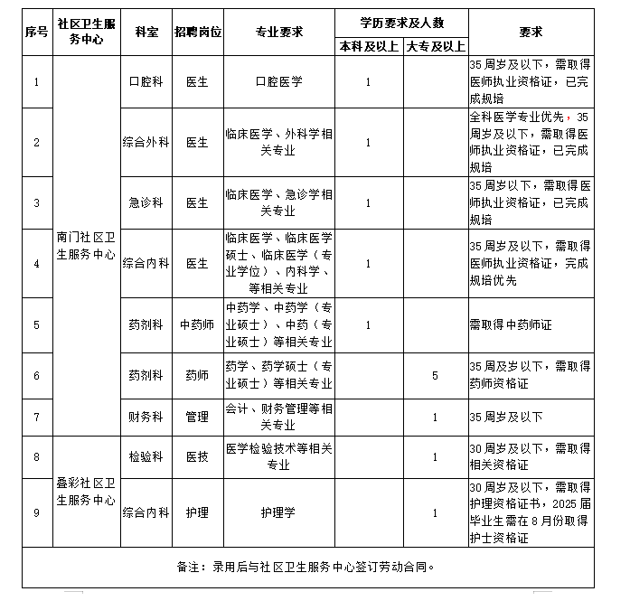 根據社區衛生服務中心工作需要,現將2025年度(第二批)招聘崗位及有關事項公布如下:
