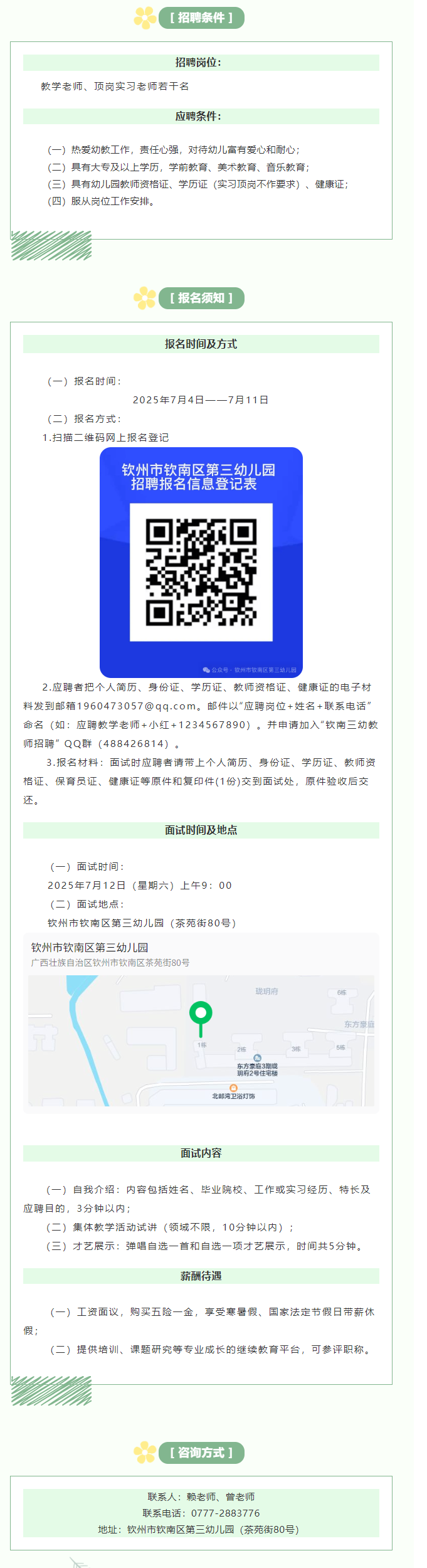 2025年欽州市欽南區第三幼兒園秋招聘教學老師、頂崗實習老師公告