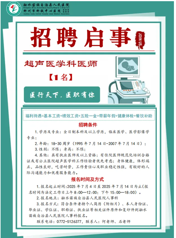 2025年融水苗族自治縣人民醫院招聘超聲醫學科醫師1名