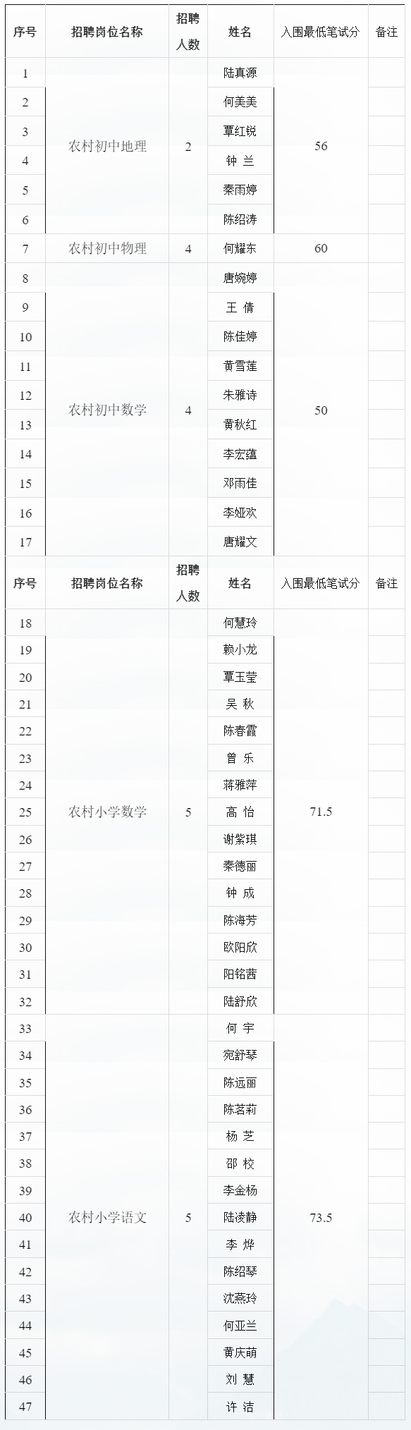 附件:1.恭城瑤族自治縣2025年中小學特崗教師招聘面試人員名單