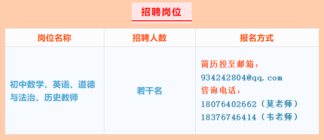報名實行網絡形式,有意者請將簡歷投至學校郵箱934242804@qq.com。具體面試時間電話通知。