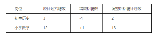 按照《2025年玉林市玉州區特崗教師招聘公告》中“招聘崗位計劃招聘人數與通過資格復審通過人數的比例達到1:3的方可開考。達不到開考比例的,減少該崗位的招聘數,空出的崗位計劃數可調劑到生源充足的其他學科崗位使用。調劑方案經玉州區特崗教師招聘領導小組審定。”的規定,由于初中歷史崗位計劃招聘3人,資格復審通過實際人數為7人,未達到開考比例。經玉州區特崗教師招聘領導小組同意,初中歷史崗位招聘人數減少1人,減少的崗位調整到生源較充足的小學數學崗位使用,具體調整如下: