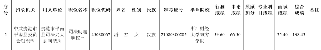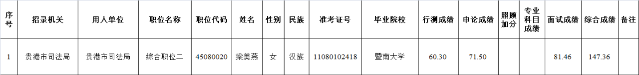 6.6 貴港市司法局2025年度考試錄用公務員擬錄用人員名單