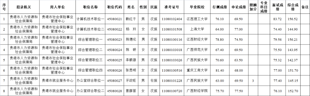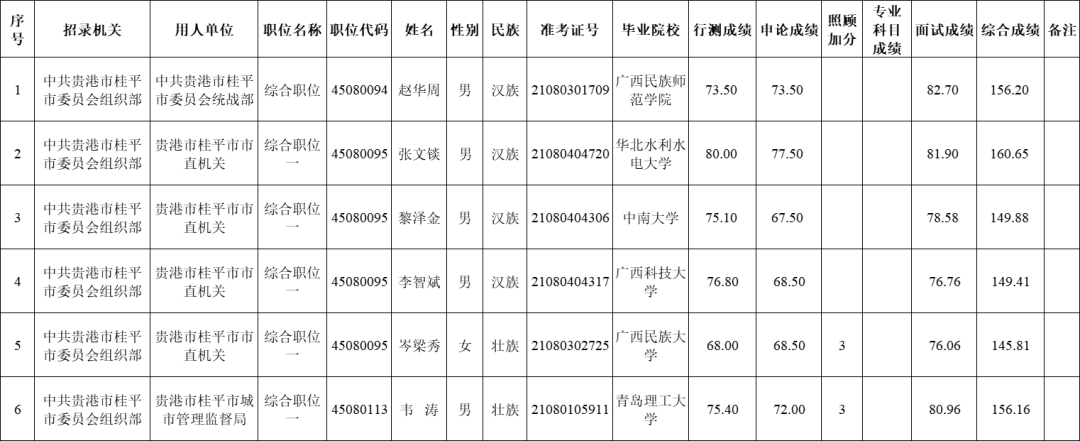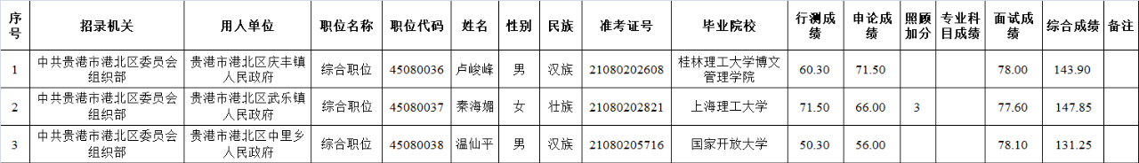 6.6 貴港市港北區2025年度考試錄用公務員擬錄用人員名單(一)