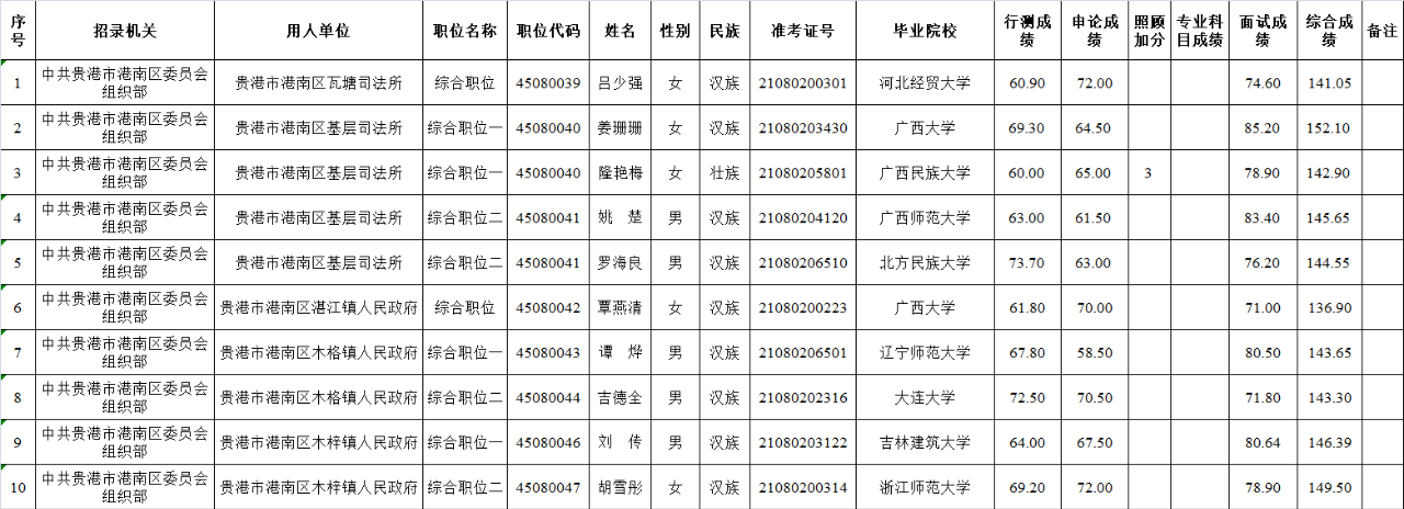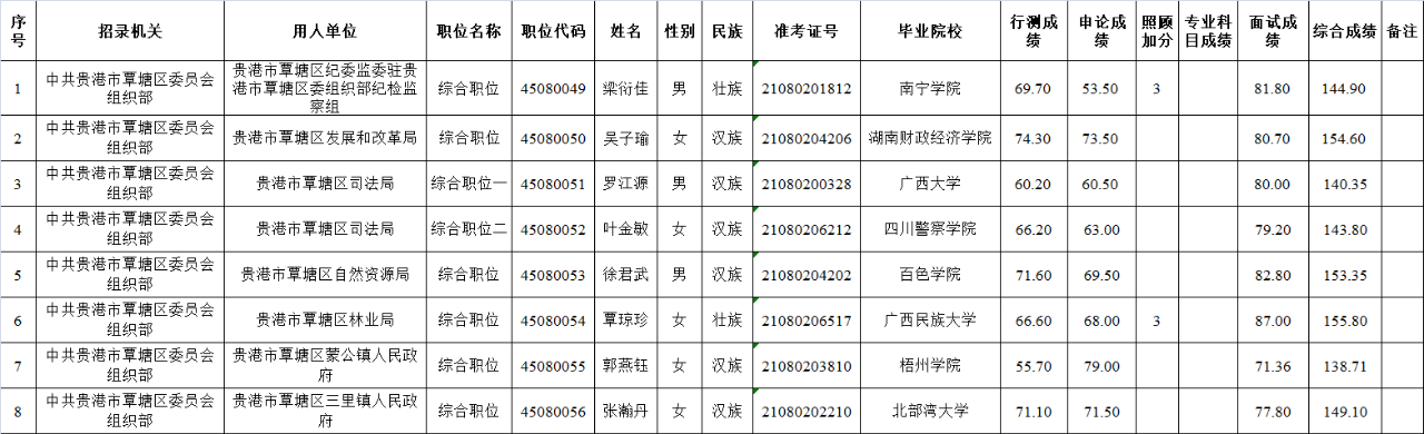 6.6 貴港市港南區2025年度考試錄用公務員擬錄用人員名單(一)