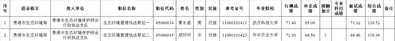 6.6 貴港市生態環境局2025年度考試錄用公務員擬錄用人員名單