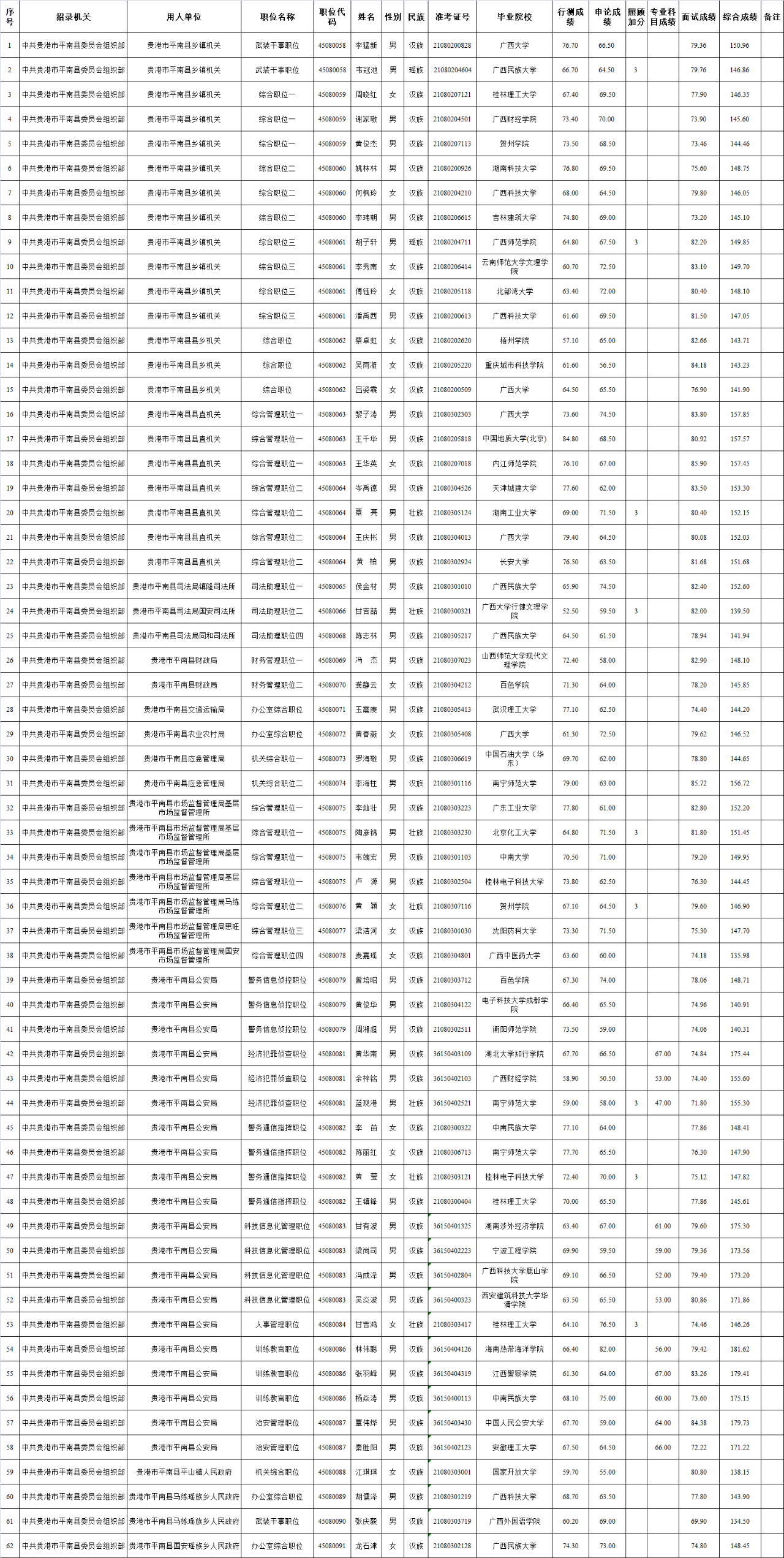 6.22 貴港市平南2025年度考試錄用公務員擬錄用人員名單(二)