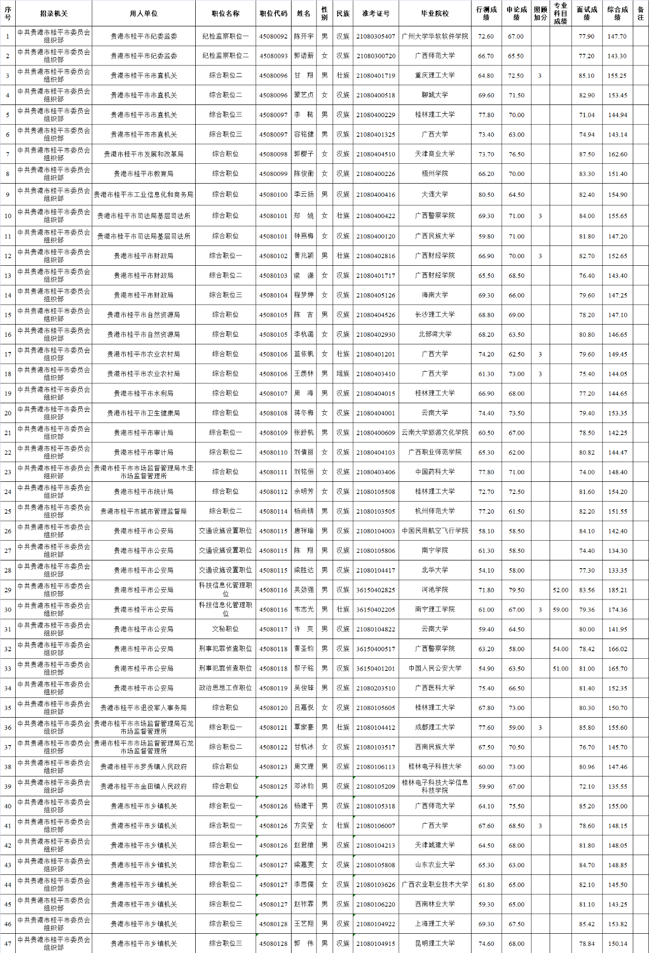 6.22 貴港市桂平市2025年度考試錄用公務員擬錄用人員名單(二)