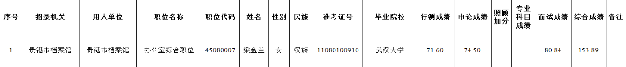 6.6 貴港市檔案館2025年度考試錄用公務員擬錄用人員名單
