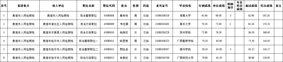 6.15 貴港人民檢察院2025年度考試錄用公務員擬錄用人員名單