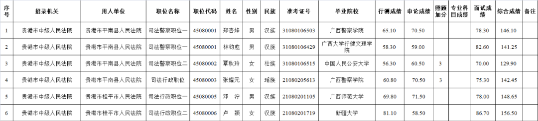 6.6 貴港中級人民法院2025年度考試錄用公務員擬錄用人員名單