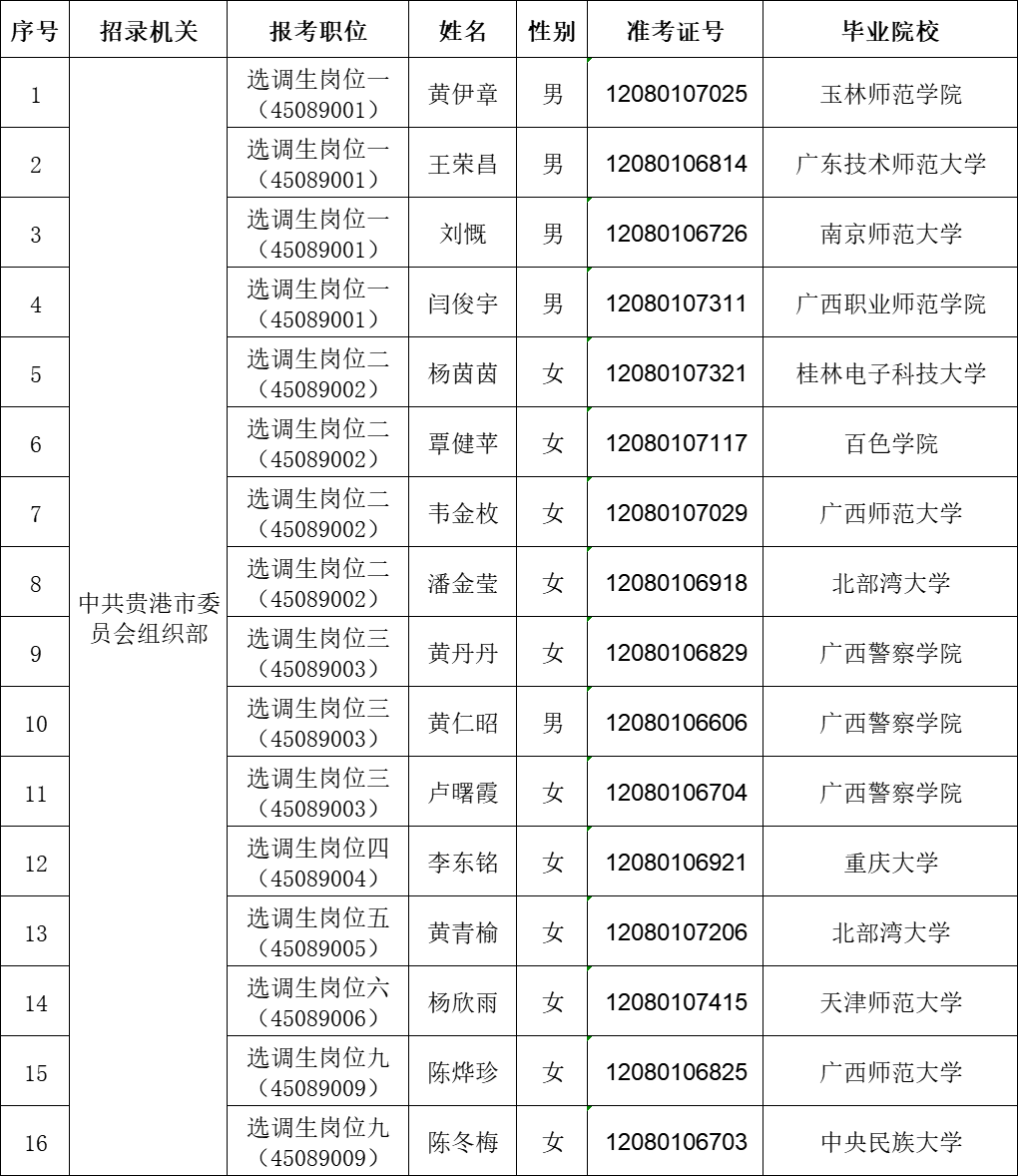 6.17 貴港市2025年從應屆優秀大學畢業生中招錄選調生擬錄用人員公示