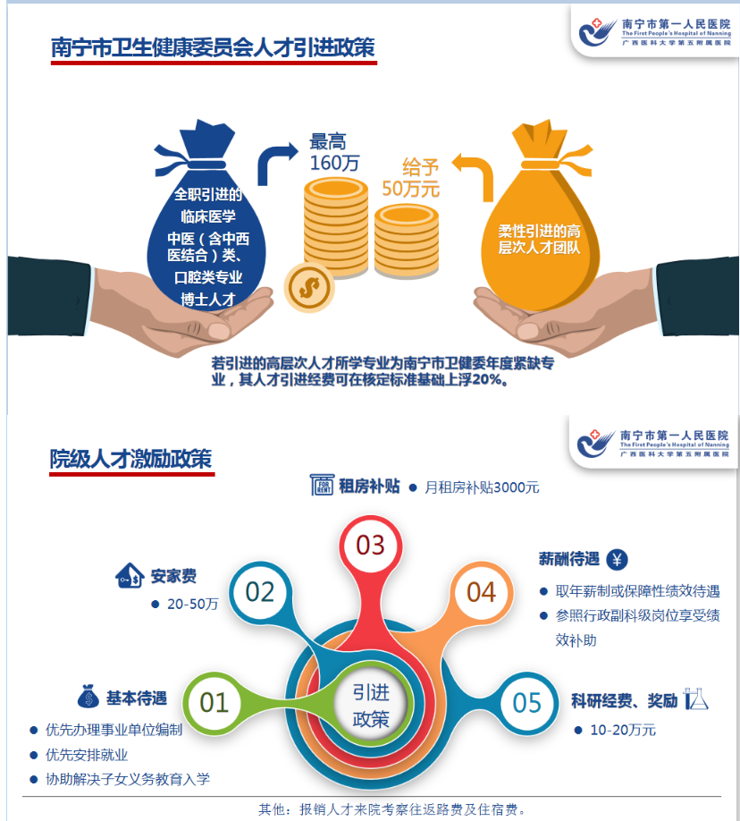 具體招聘公告詳見醫院官網(http://nn1yy.com/)人才信息板塊。具體招聘辦法由南寧市第一人民醫院解釋。集團成員單位待遇按各成員單位相關制度執行。崗位表中列名的常駐地點不構成對具體工作地點或崗位的長期承諾,醫院保留根據員工個人發展需要及工作需要對員工進行集團內調動、交流的權利,應聘人員應予以理解并接受。