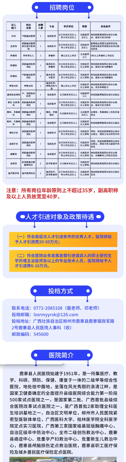原文標題:誠聘英才——鹿寨縣人民醫院2025年度人才招聘!