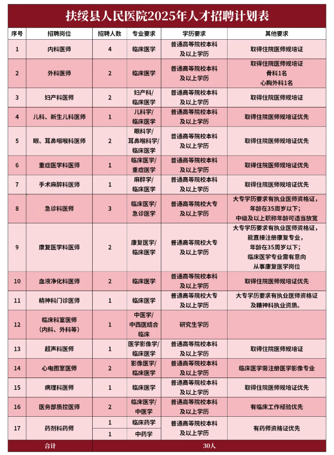 扶綏縣人民醫院2025年人才招聘計劃