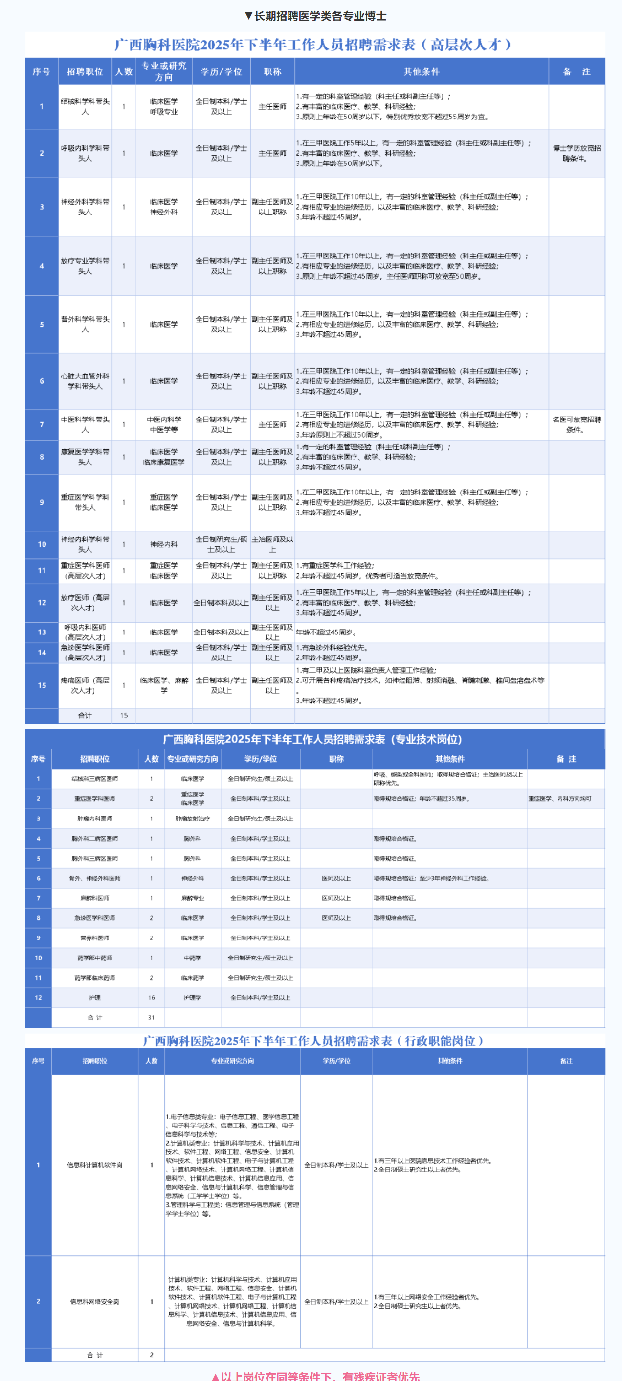 原文標題:廣西胸科醫院2025年下半年工作人員招聘公告
