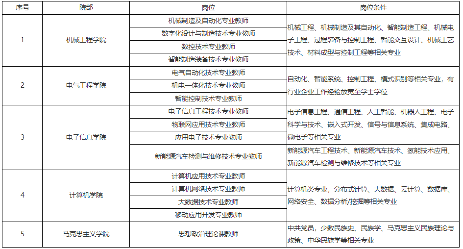 4.專任教師崗具有碩士及以上學位;具有高校教學經驗、中級以上專業技術職務或行業企業工作經驗,條件可放寬至學士學位;