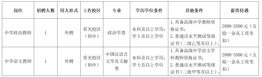 根據學校工作需要,南寧市第十中學星光校區(初中部)面向社會招聘教職工,具體崗位如下: