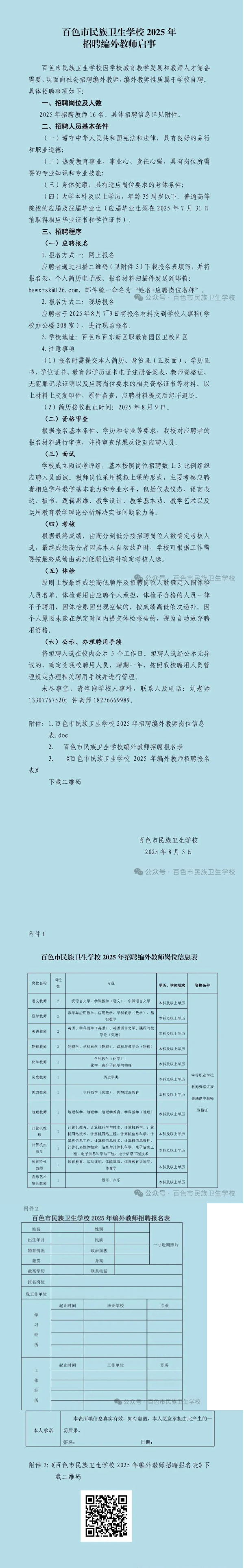 原文標題:百色市民族衛生學校2025年招聘編外教師啟事