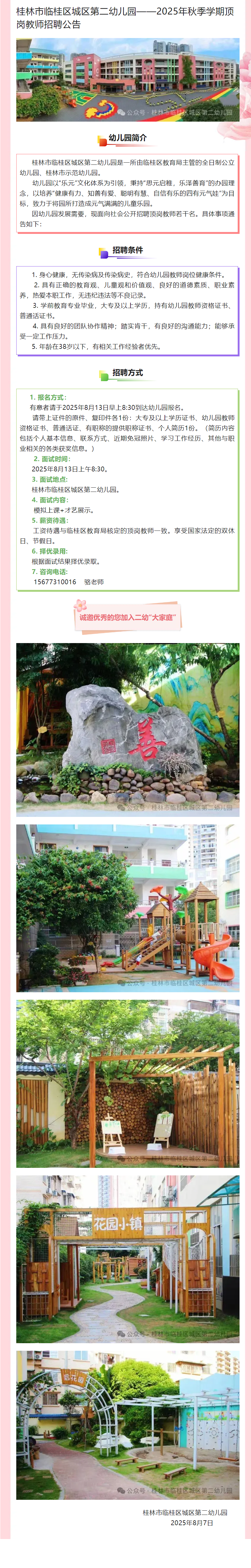原文標題:桂林市臨桂區城區第二幼兒園——2025年秋季學期頂崗教師招聘公告