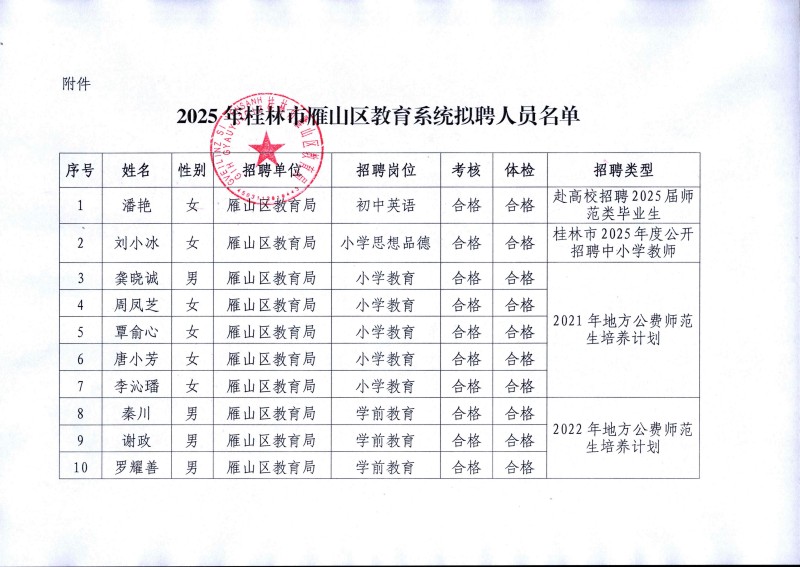 2025年桂林市雁山區教育系統擬聘人員名單公示