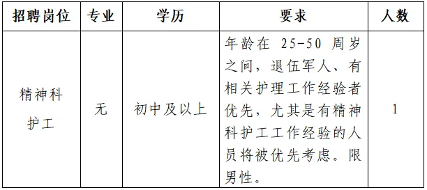 為了給我院精神科患者提供更優質、貼心的照護服務,現面向社會公開招聘精神科護工一名,期待有愛心、有責任心的你加入我們的團隊,共同為患者的健康保駕護航。具體事宜公告如下: