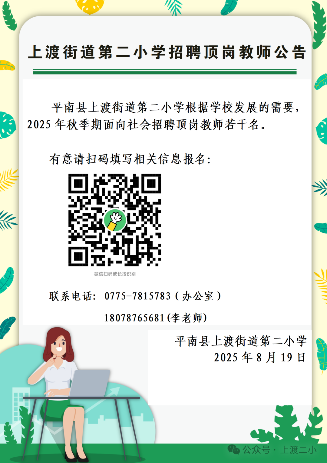 原文標(biāo)題:上渡街道第二小學(xué)2025年秋季期頂崗教師招聘公告