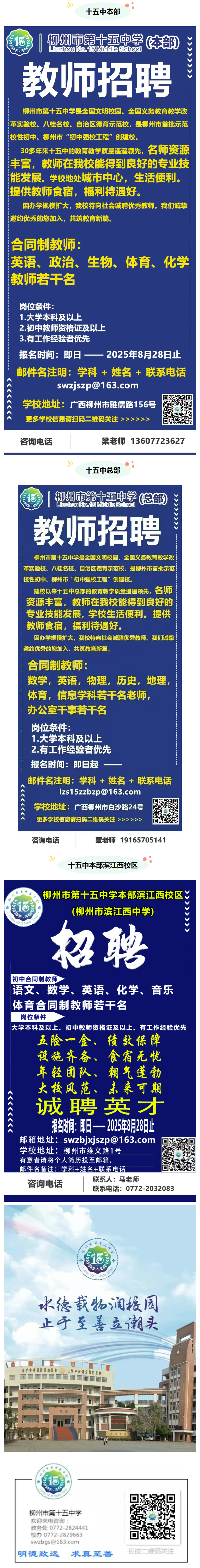原文標(biāo)題:誠(chéng)聘英才!柳州市第十五中學(xué)三校區(qū)招聘公告
