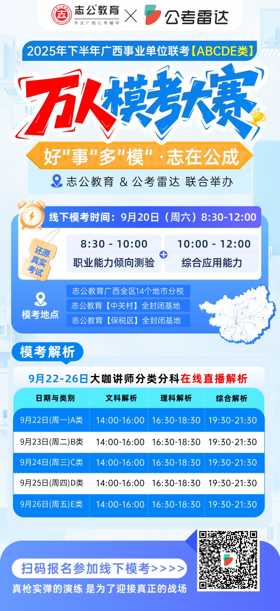 參與模考大賽的考生可按時觀看志公大咖講師的分類分科在線直播解析,從專業角度學習答題思路和技巧,尤其是針對不同類別(ABCDE 類)的考查重點,學習老師的分析方法,提升自己的解題能力。
