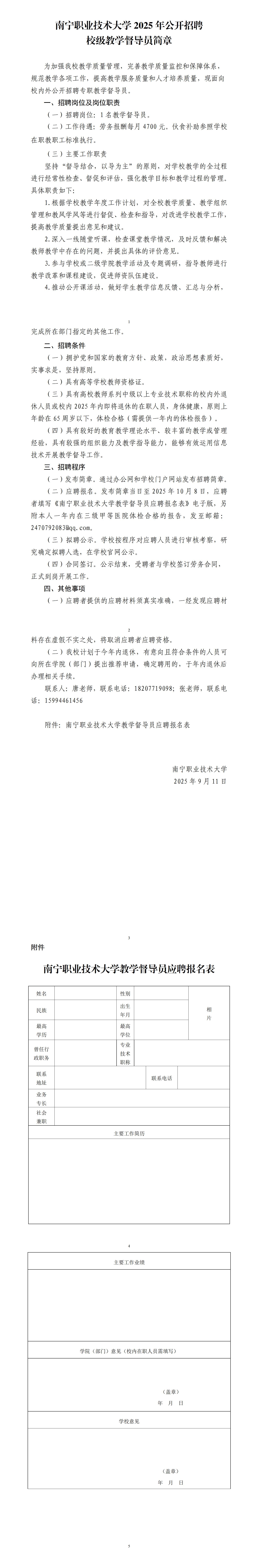 2025年南寧職業技術大學公開招聘校級教學督導員簡章