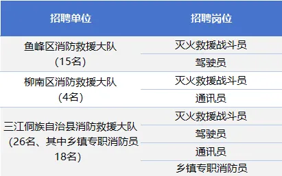 為滿足社會(huì)經(jīng)濟(jì)迅速發(fā)展對(duì)消防力量的需求,積極適應(yīng)新形勢新任務(wù)新要求,結(jié)合單位編制及工作情況需要,柳州市消防救援支隊(duì)擬面向社會(huì)公開招聘政府專職消防員、鄉(xiāng)鎮(zhèn)專職消防員,熱忱歡迎熱愛消防、銳意進(jìn)取、敢于挑戰(zhàn)的廣大有志青年加入。詳情如下: