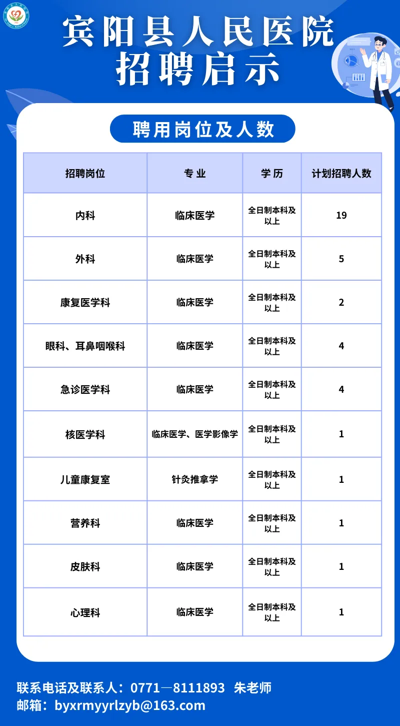 原文標題:【招聘啟示】歡迎您加入賓陽縣人民醫院大家庭!