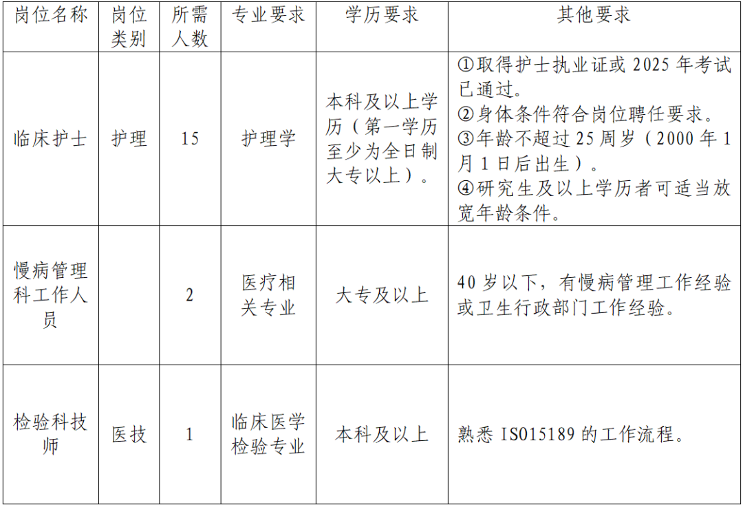 (一)報名。應聘者需在2025年9月21日前將個人電子簡歷及應聘所需佐證材料,包括但不限于畢業證(第一學歷和最高學歷)、學位證、執業證(考試成績)、職稱證、進修結業證、??谱o士培訓合格證、執業資格考試成績單等打包發送至rsk7836669@163.com郵箱,報名材料以“姓名+專業+衛技招聘”名字命名。