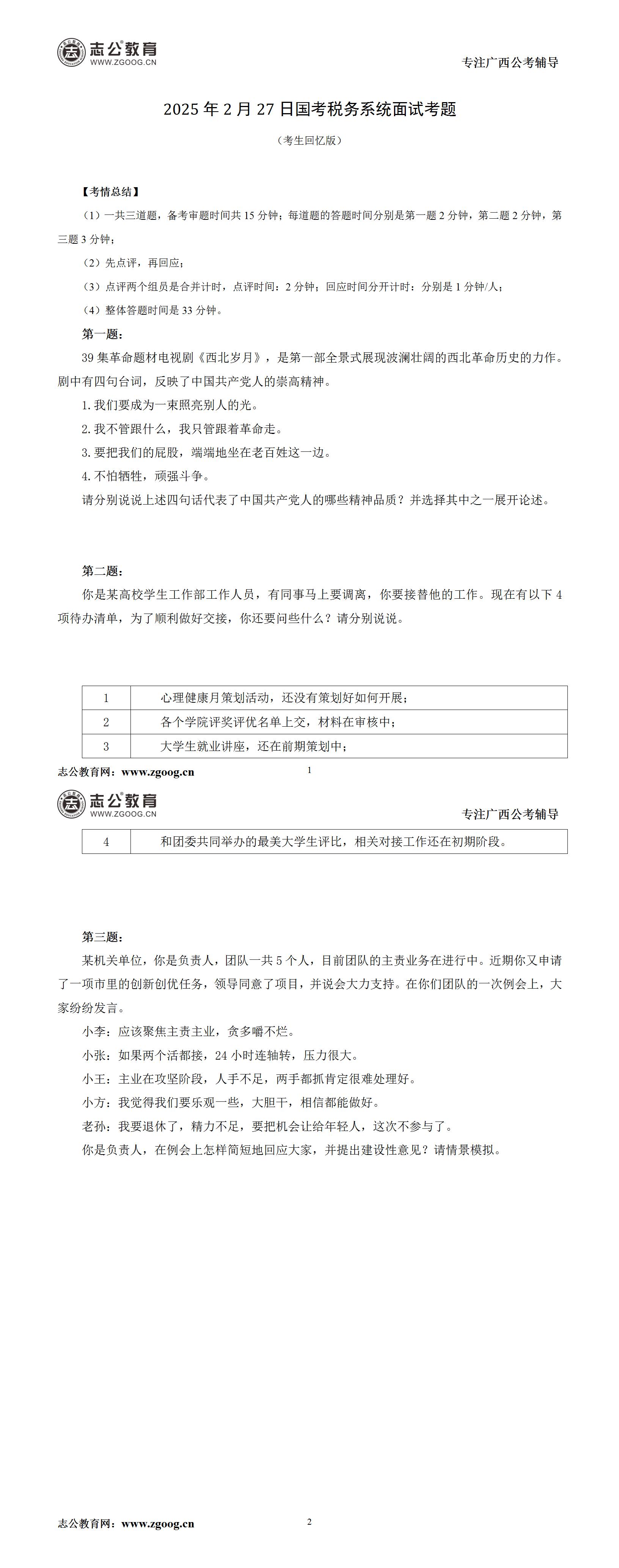 2025年國考稅務系統2月27日面試考題(考生回憶版)