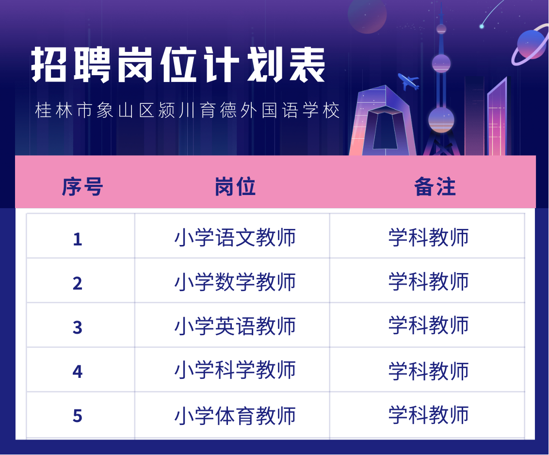 招聘條件:具有大學本科或以上學歷;具備專業對口的相應從業資格證;年齡在25-45周歲(特別優秀的年齡可適當放寬);有班主任管理經驗、有特長和在公、民辦學校有任教經驗的優先錄用。