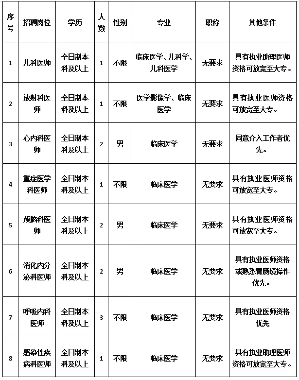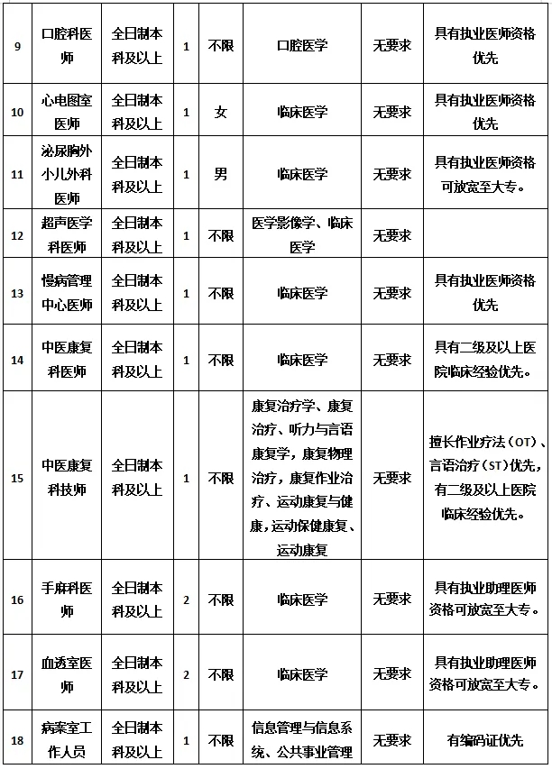 6. 年齡18-35周歲,具有主治醫師資格可放寬至45周歲。