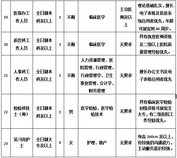(三)面試時間及所需材料:資格審查通過后,將組織面試,具體時間以正式通知為準。未入圍者,將不再另行通知。面試時,需攜帶身份證、畢業證、執業證、資格證等原件進行核驗。