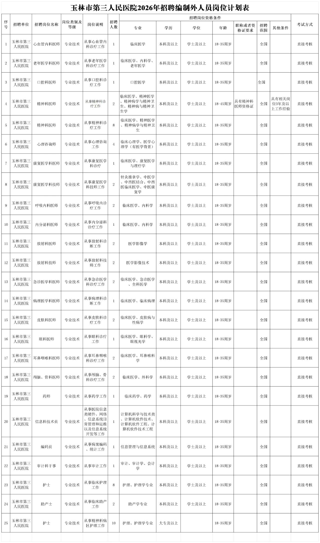原文標題:2026年玉林市第三人民醫院公開招聘編制外人員公告