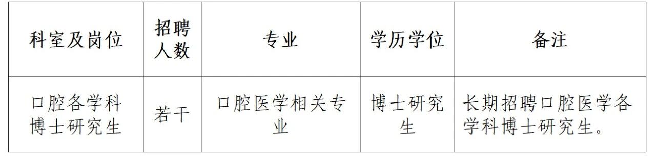 人才條件:35歲以下,口腔醫學相關專業研究生畢業,獲碩士學位。