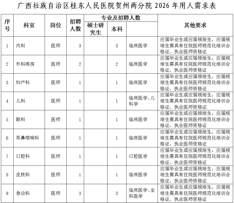 原文標題:2026年廣西壯族自治區桂東人民醫院賀州兩分院人才招聘公告