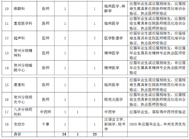 2026年廣西壯族自治區桂東人民醫院賀州兩分院人才招聘公告