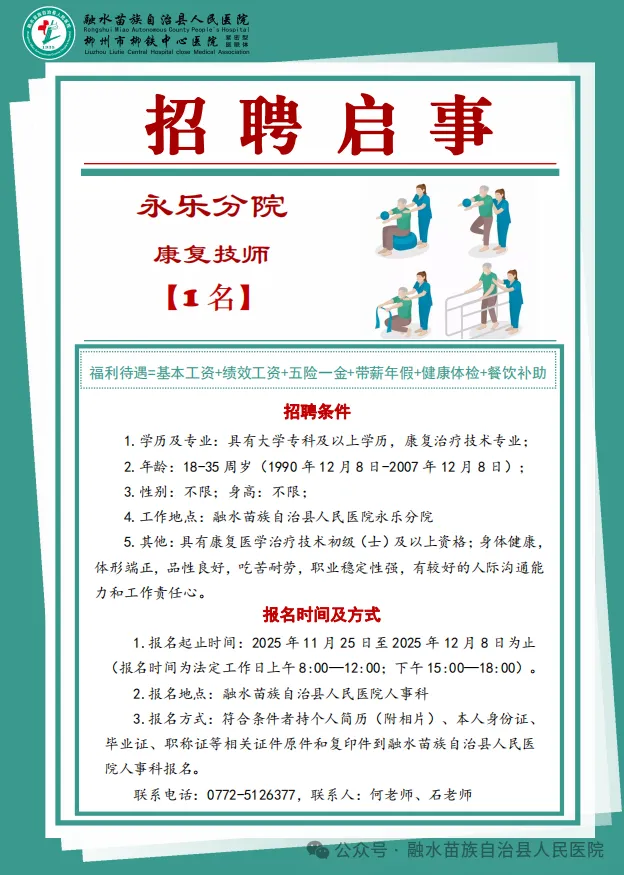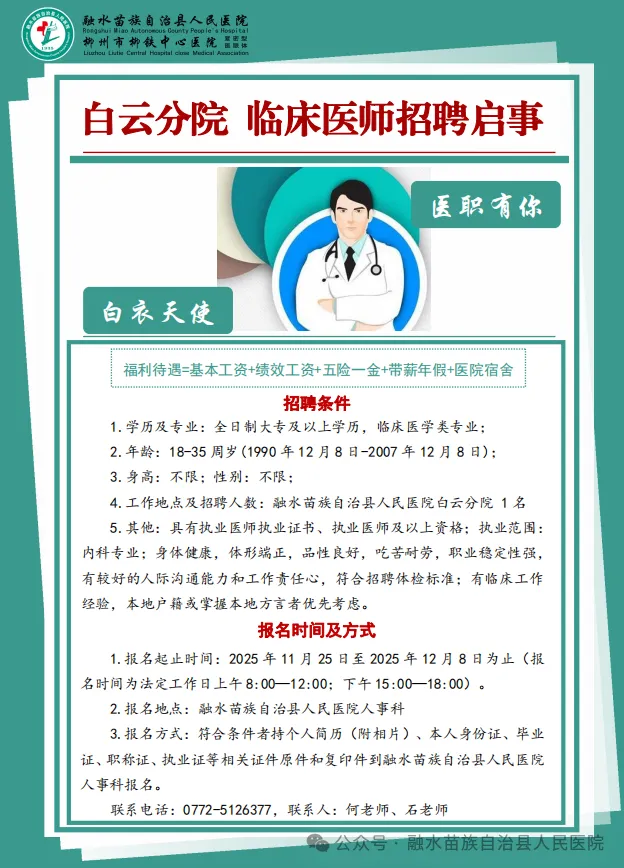2025年融水苗族自治縣人民醫院緊密型醫共體白云中心衛生院、永樂鎮衛生院招聘