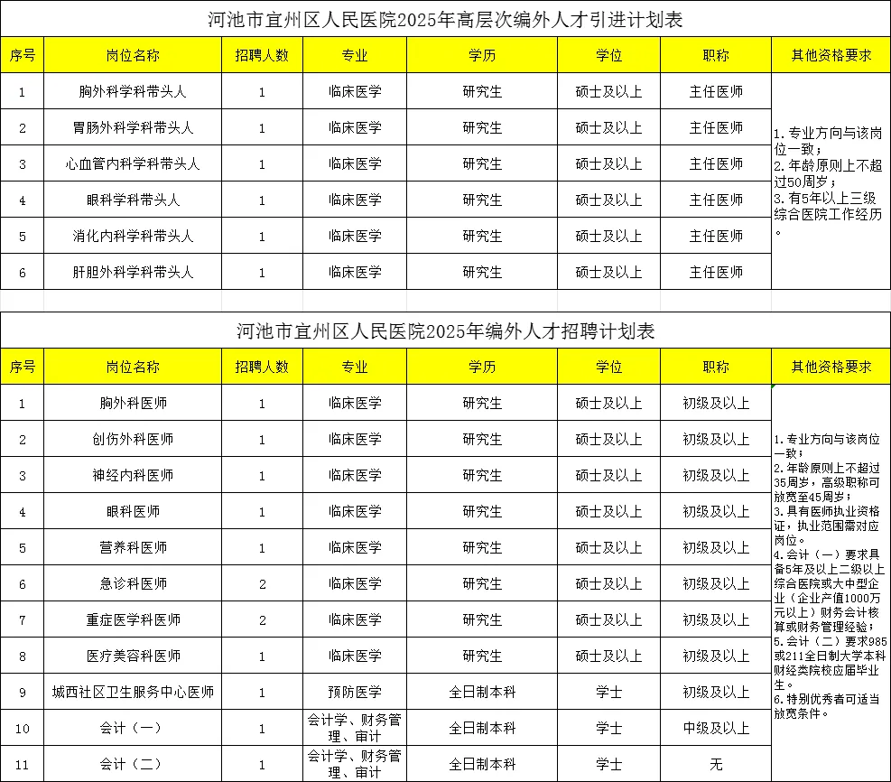 原文標題:2025年河池市宜州區人民醫院編外人才招聘