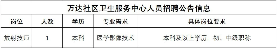 原文標題:2025年萬達社區衛生服務中心人員招聘公告